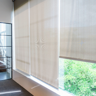 การนำเส้นด้ายมาเคลือบด้วย PVC ชนิดพิเศษ สามารถมองผ้านม่านปรับแสงซันสกรีน เห็นวิวภายนอกได้อย่างสบายตา ทำให้บรรยากาศภายนอกที่ร้อนระอุจากแสงแดดดูอบอุ่น เหมาะกับพื้นที่ที่แสงแดดไม่จัดมาก